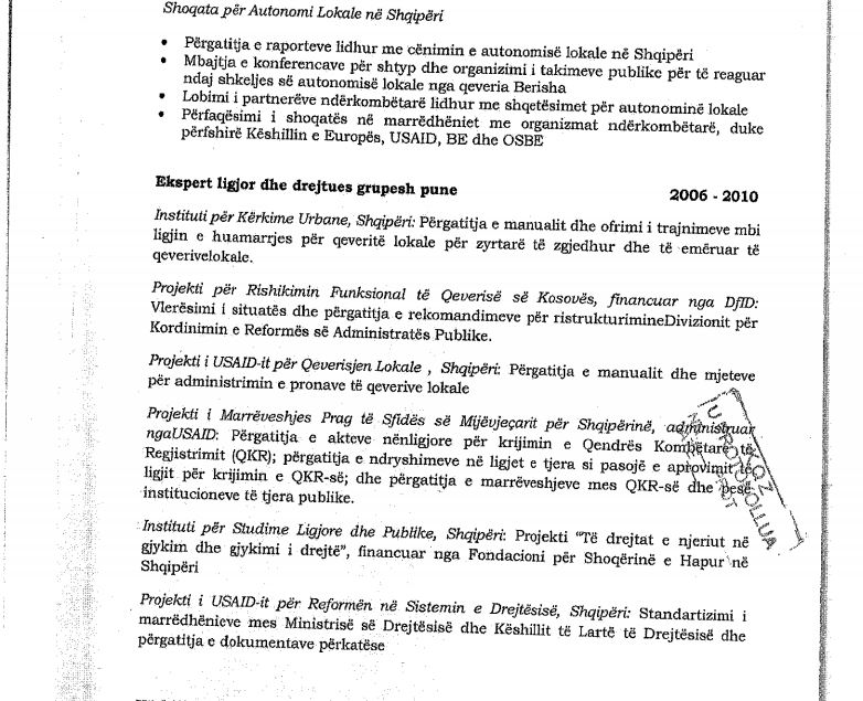 Më poshtë pjesë nga CV-ja e Çuçit.