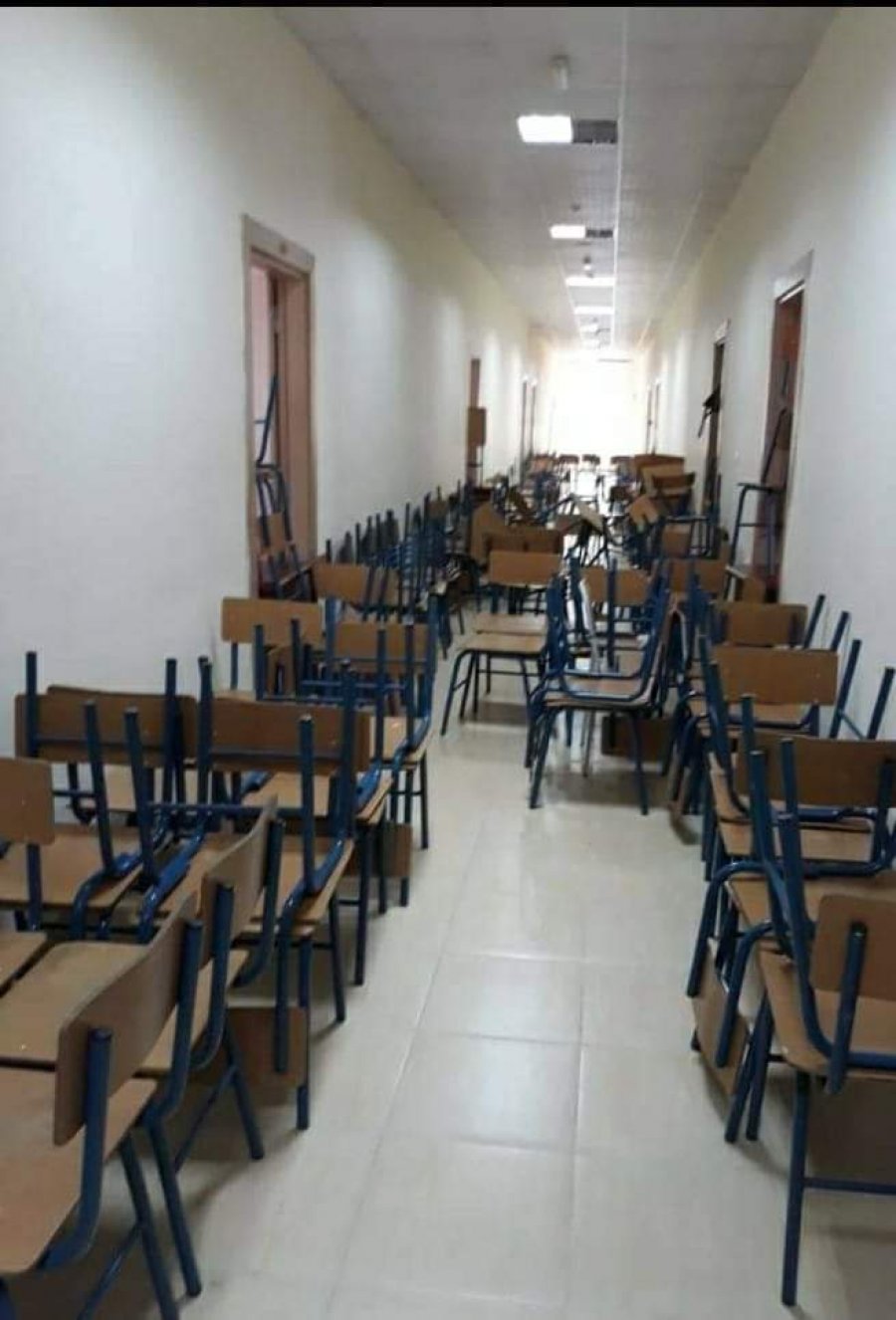 Bëhet fjalë për studentët në Fakultetin e Historisë dhe Filologjisë të cilët kanë nxjerrë të gjitha karriget jashtë klasave dhe duke i vendosur në korridore.