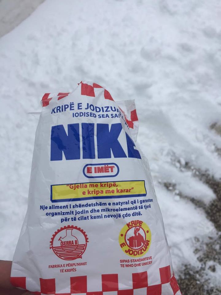 Fotot të bëra publike nga JOQ,tregojnë disa të rinj të cilët po hedhin kripë në rrugën e ngrirë duke lënë këtë mesazh: Me krip gjelle meqenese shteti na harroi kete dimer”.