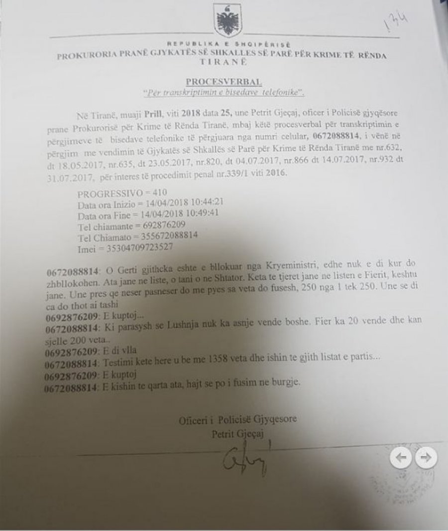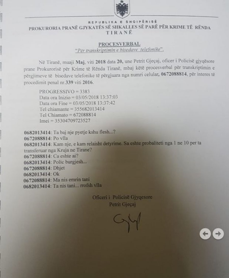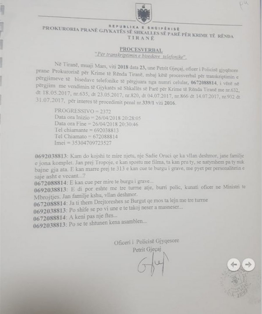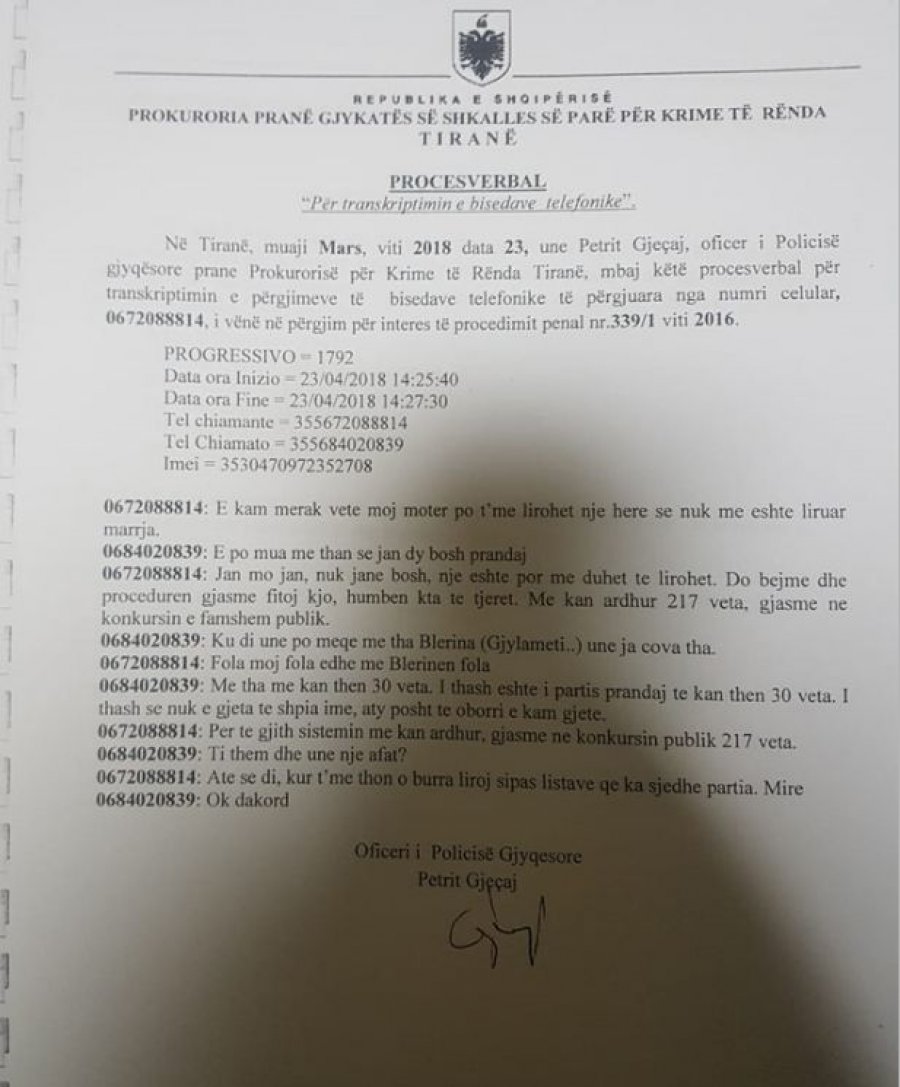 Blerina Gjylameti përmendet në një bisedë të Çukos me një person të tretë për ndërhyrjen në punësimin e një personi të lidhur me Partinë Socialiste, ndërsa Paulin Sterkaj ankohet për transferimin e një policeje me origjinë nga Tropoja, nga burgu 313 te “Ali Demi”.