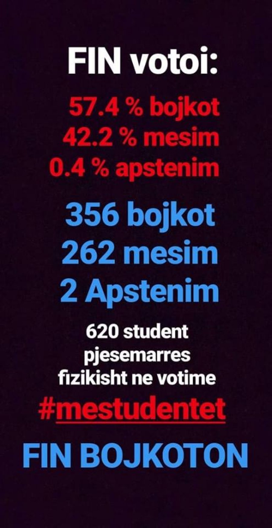 Por ka pasur edhe nga ata persona që kërkojnë mësim, dhe pas një votimi të bërë tek Fakulteti i Inxhinierisë së Ndërtimit, shumica dërrmuese ka votuar për vijim të bojkotit dhe protestës.