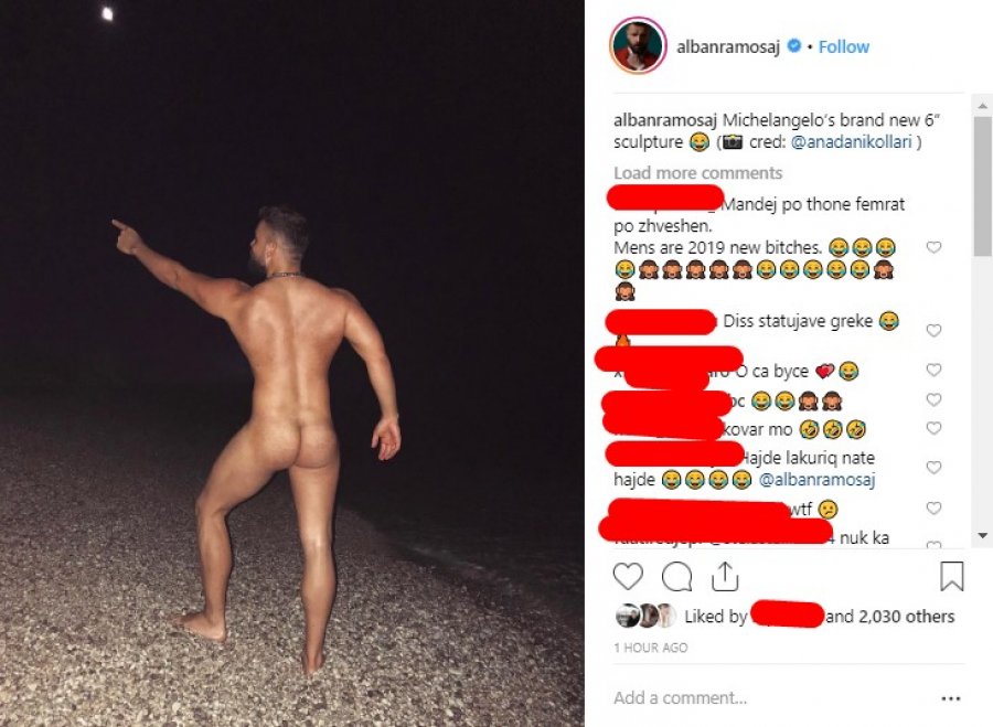 Këngëtari i talentuar ka publikuar një foto ku shfaqet krejtësisht lakuriq në një plazh duke improvizuar skulpturën e famshme të Mikelanxhelos dhe nga përshkrimi na tregoi se autorja e kësaj foto është modelja Anada Nikollari.