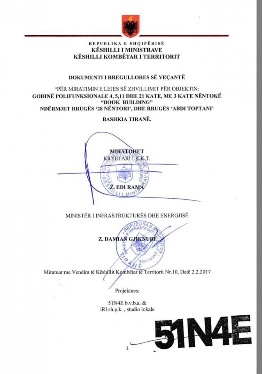 Vulën përfundimtare për ndërtimin e dy kullave në Tiranë e ka dhënë kryetari i Bashkisë së Tiranës, Erion Veliaj.