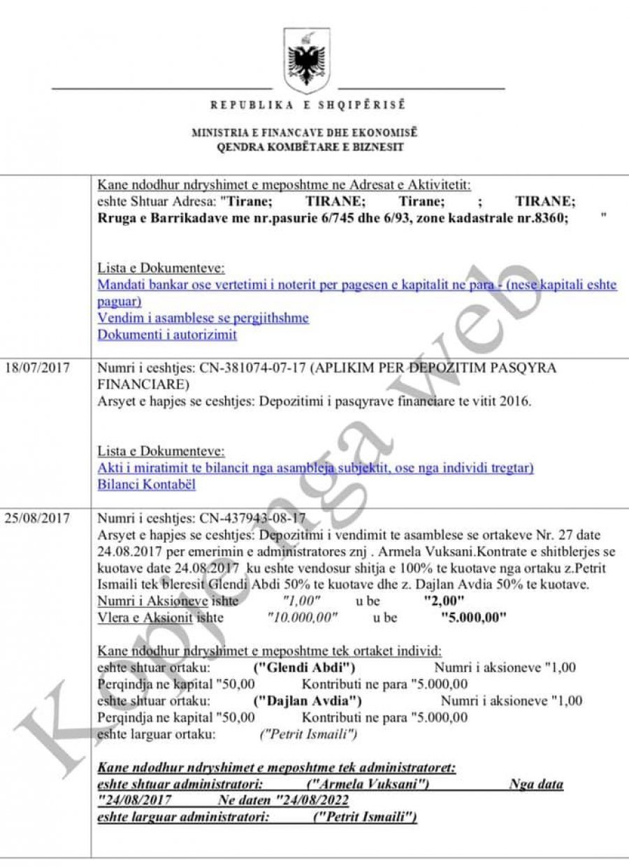 “Po me firmen e Rames u favorizuan me VKM nr. 582/2018, te personalizuar, me kufizimin e zones se mbrojtur ne qendren historike, duke e rrudhur ate e duke ngulur piketat e kullave te bixhozit. Vulen ia vendosi Erioni Veliaj, duke miratuar lejen e ndertimit dhe shkaterrimit te qendres se Tiranes. Nder shume shoqeri qe kane pronaret Avdia/Abdi, perdorin njeren syresh, me 580 mln aktive, ne cilesine e shoqerise sipermarrese (TD&Partners)”, vijon më tej deputetja e PD-së teksa denoncon ndërtimin e dy kullave të reja. /Exit.al