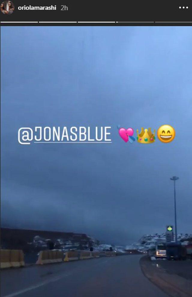 Ajo ka postuar një video në Instastory ku shfaqet duke udhëtuar teksa dëgjon këngën e Jonas Blue dhe e quan atë mbret duke përdorur emojin e kurorës, epitet që e mban Noizy.