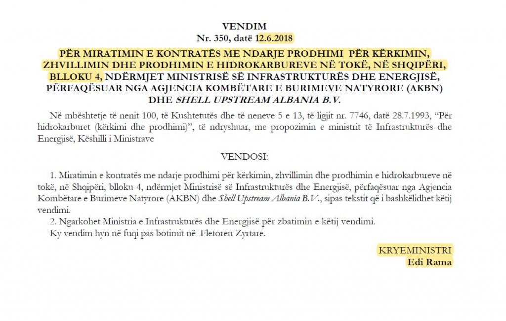 4 muaj më vonë, më 12 qershor, marrëveshja u miratua në Këshillin e Ministrave dhe mban firmën e Edi Ramës.