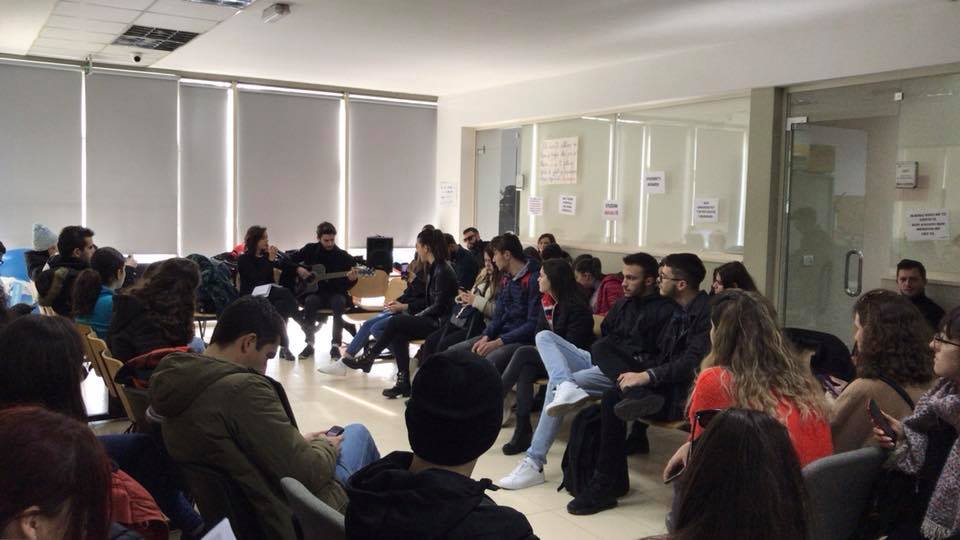 Në Fakultetin e Shkencave Sociale vazhdon bojkotimi total dhe aktiv i mësimit. Si çdo ditë, studentët nuk mjaftohen me demonstrimin e kundërshtisë së tyre, por ia arrijnë t’i japin një jetë të re universitetit. Sot paradite është nisur me muzikën dhe këngën e Brian Mezinit dhe Tea Alushit.