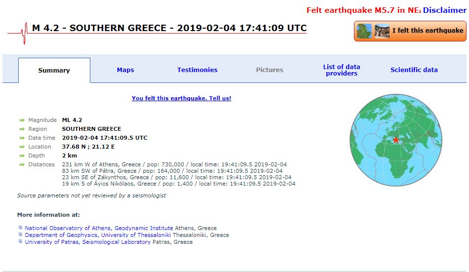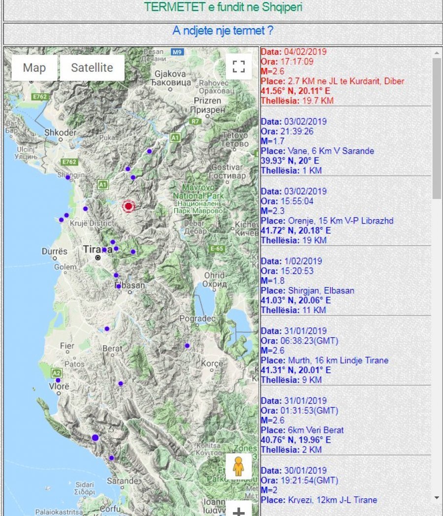 Dy termete janë regjistruar mbrëmjen e sotme, një prej të cilëve në Greqi me magnitudë 4.2 ballë, lëkundjet e të cilir janë ndjerë edhe në jugun e vendit tonë në orën 17:42.