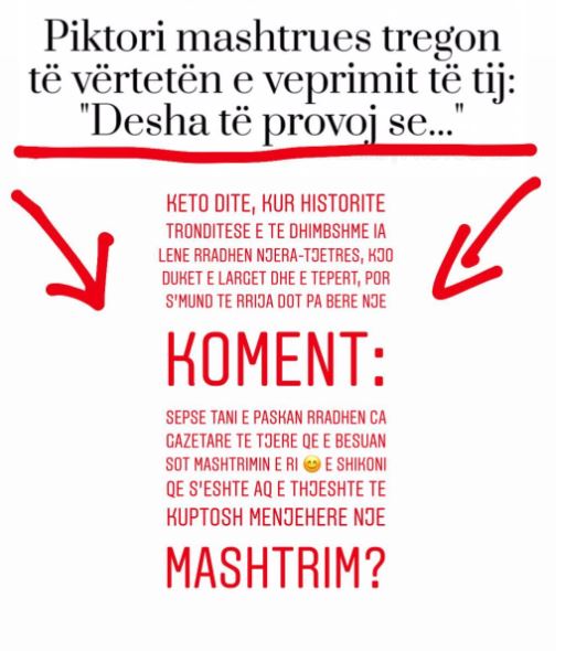 “Këto ditë kur historitë tronditëse e të dhimbshme ia lënë radhën njëra-tjetrës, kjo duket e largët dhe e tepërt, por s’mund të rrija dot pa bërë një koment: Sepse tani e paskan radhën ca gazetarë të tjerë që e besuan sot mashtrimin e tij. E shikoni që s’është aq e thjeshtë të kuptosh menjëherë një mashtrim?”, shkroi moderatorja shqiptare.