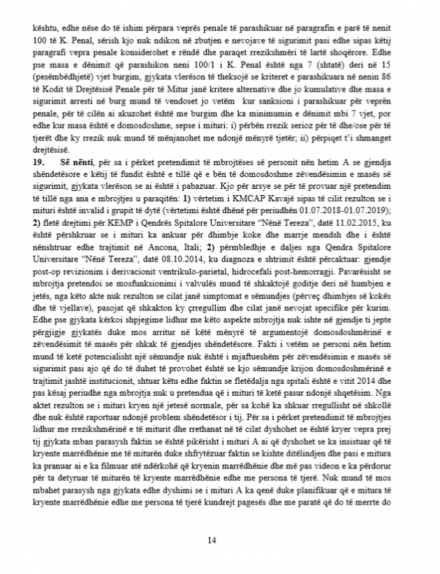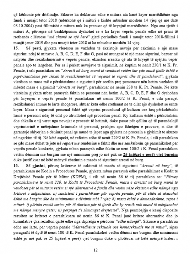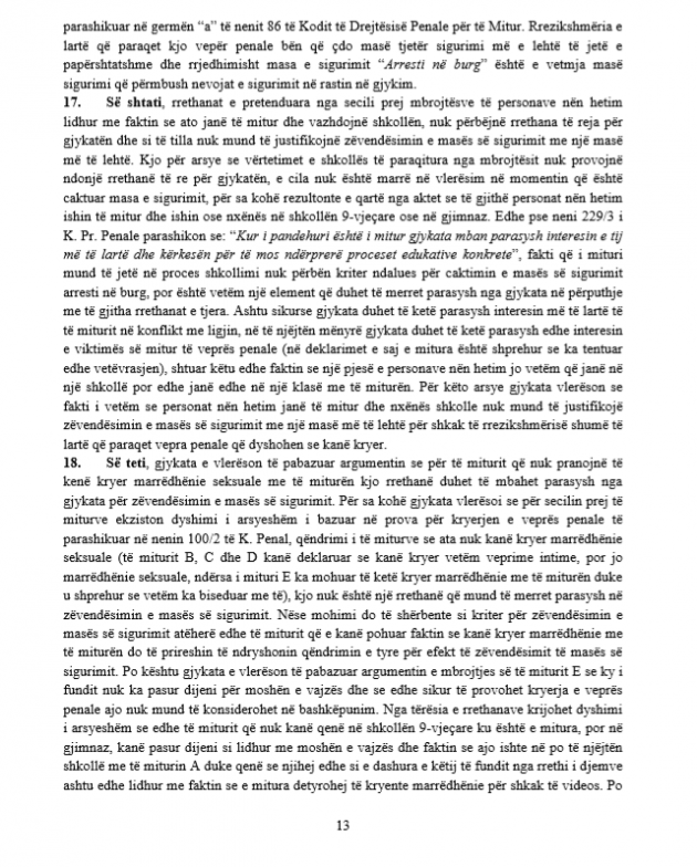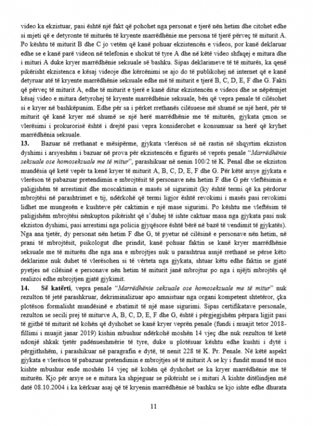 Lutja per marredhenie seksuale- Duke qenë se në fillim të tetorit 2018 i mituri kishte ditëlindjen dhe mbushte 14 vjeç e ka pyetur të miturën se çfarë dhurate do i bënte ajo duke i thënë më pas se nuk donte asnjë dhuratë por donte që të kryente marrëdhënie seksuale së bashku. E mitura i ishte përgjigjur duke thënë direkt jo. Fillimisht i mituri nuk ka këmbëngulur por më pas çdo tre katër ditë kërkonte që të kryenin marrëdhënie së bashku duke i thënë vazhdimisht se një gjë që të kërkoj unë nuk ma plotëson dëshirën. Djali ka qëndruar i ftohtë dhe pas shumë lutjeve vajza ka pranuar të kryejë marrëdhënie së bashku.