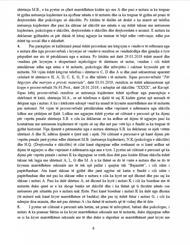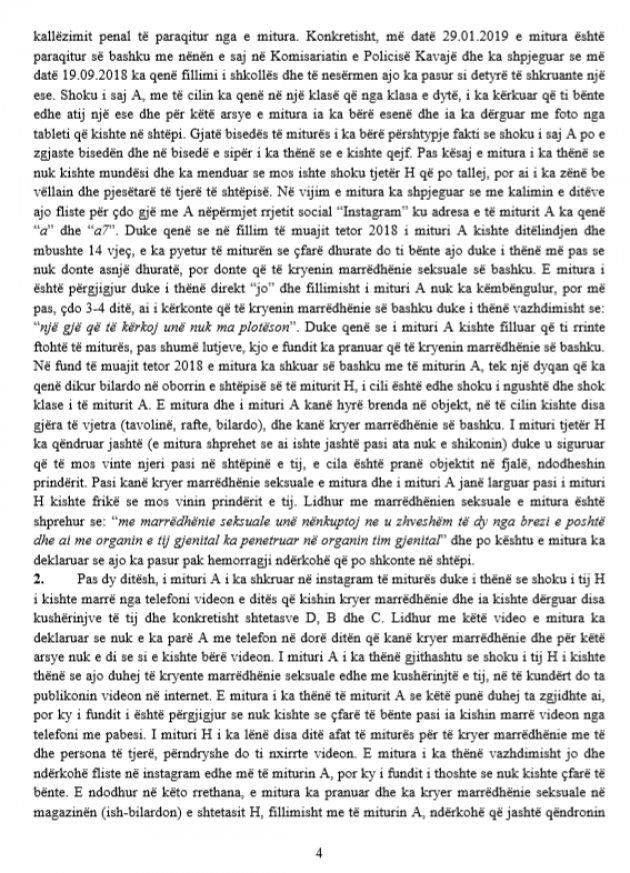 Referuar dokumentit, aty tregohet se çfarë ka ndodhur që nga muaji tetor 2018 deri në janar të vitit 2019, pak kohë para se vajza e mitur të bënte denoncimin në polici.
