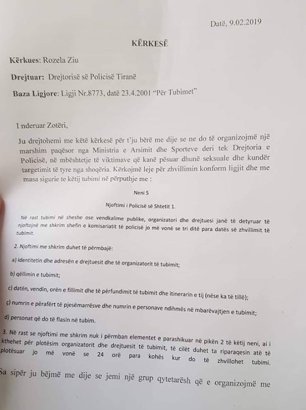 Ndërkohë, sot është dorëzuar në Drejtorinë e Policisë së Tiranës kërkesa për lejë të zhvillimit të marshimit.