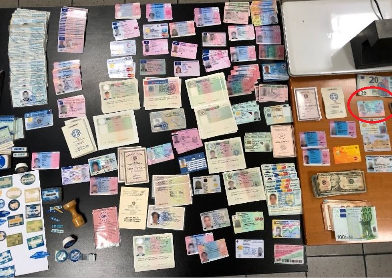 Nga fotot e publikuara nga policia greke mes shumë pasaportave dhe kartave të identitetit ka edhe me kombësi shqiptare.