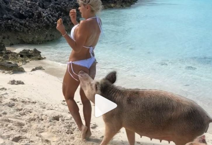 Një modele nga Venezuela ka shpërndarë në Instagram videon me momentin kur ajo u kafshua nga një derr i egër gjatë xhirimeve me bikini në Bahamas.