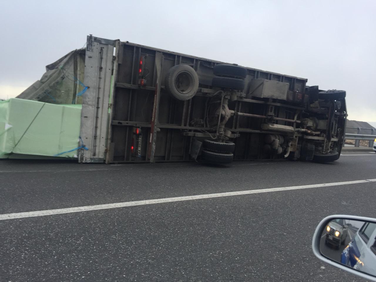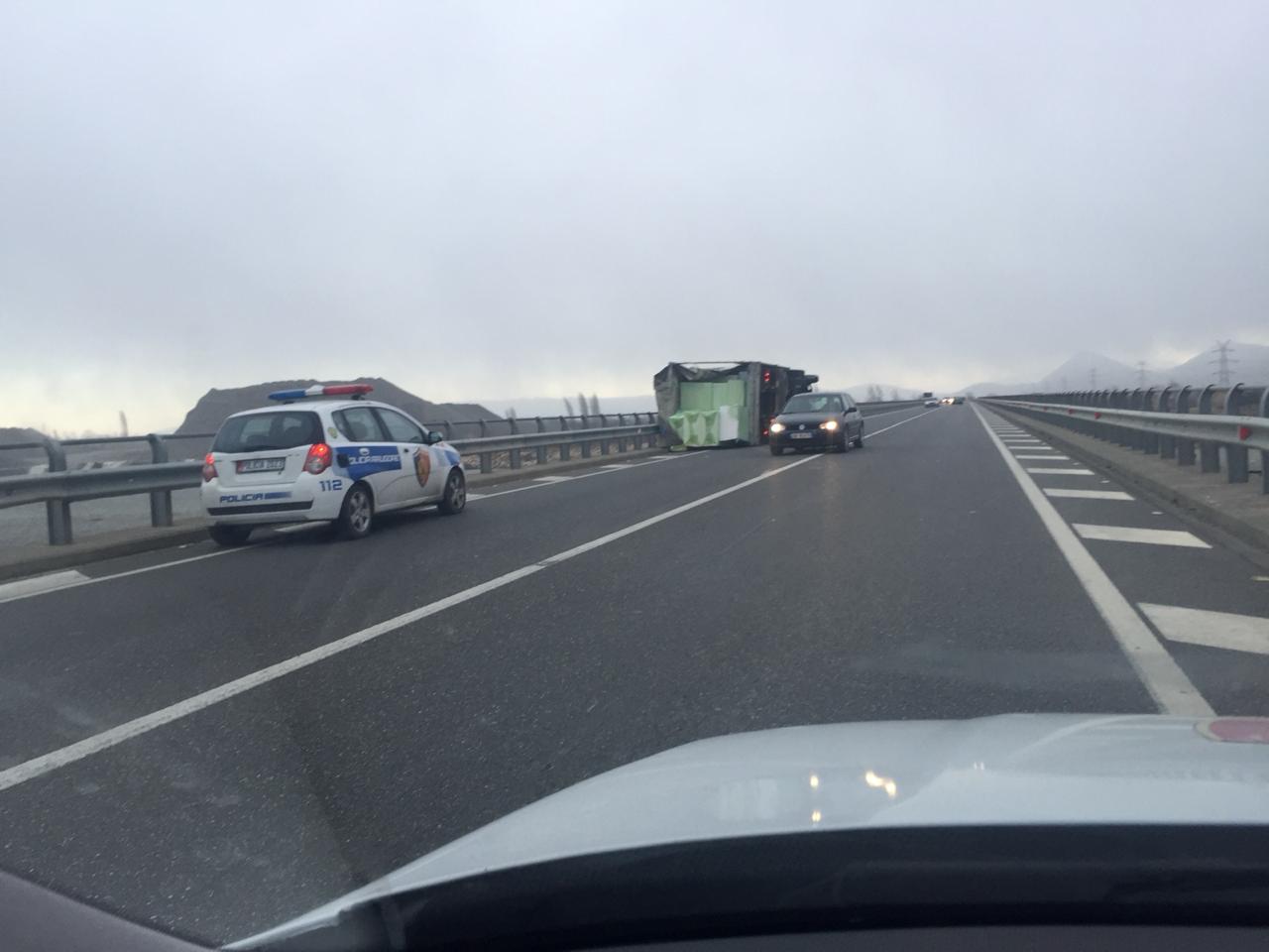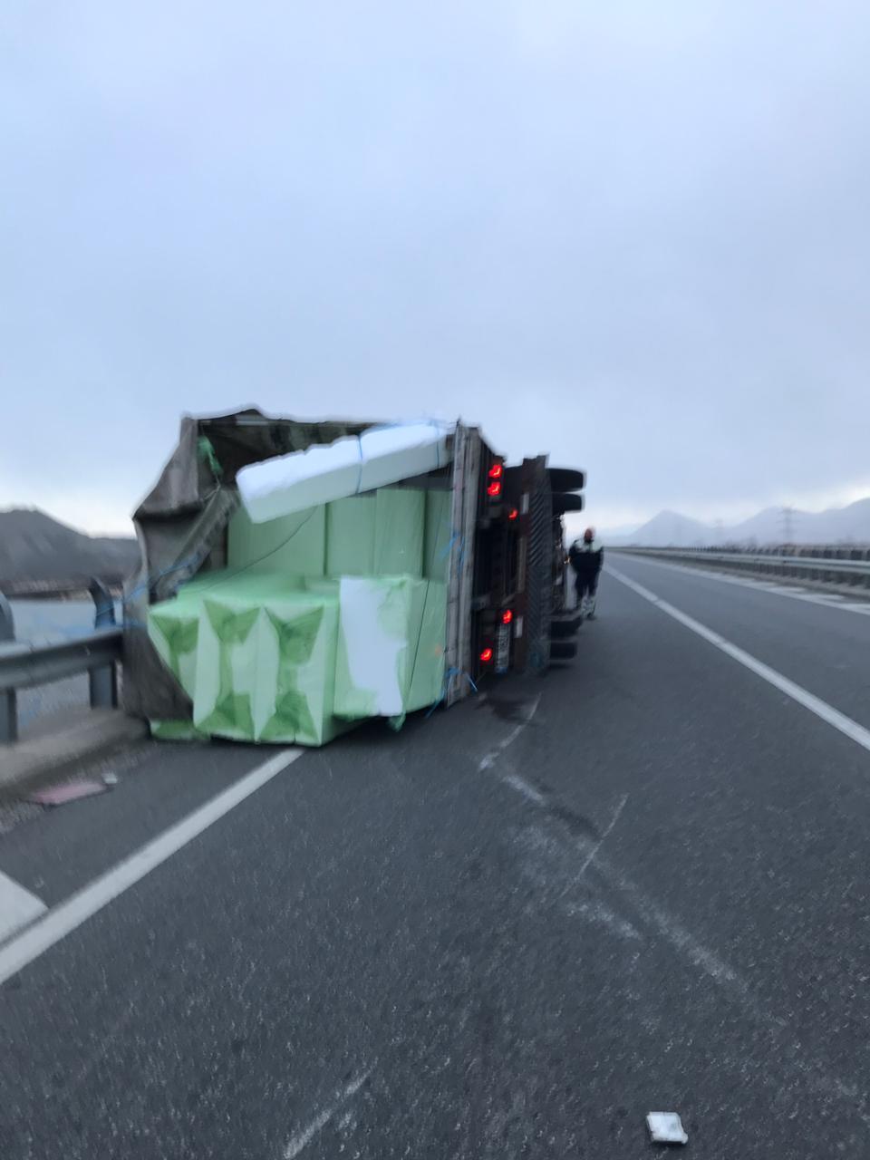 Era e fortë përmbysi një kamion në superstradën Lezhë-Laç, pranë urës së Milotit mëngjesin e sotëm