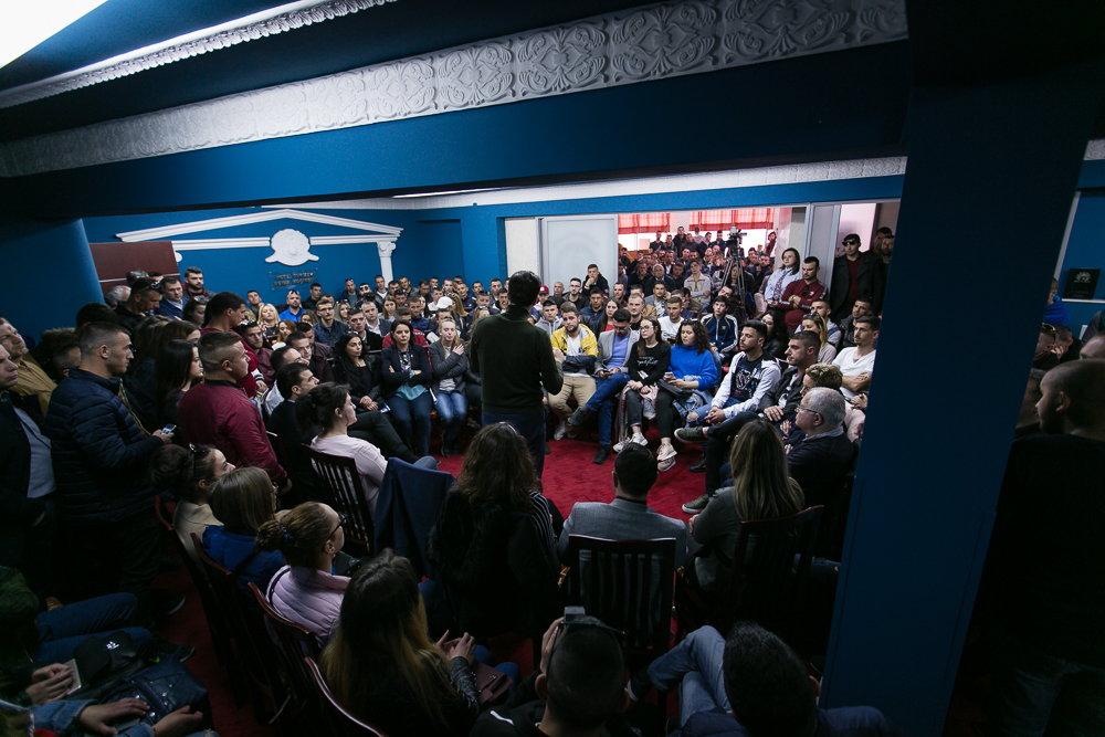 BASHKËBISEDIMI I KRYETARIT TË PD, LULZIM BASHA ME STUDENTËT E KORÇËS