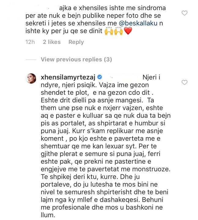 Xhensila Myrtezajt i ka ardhur një koment në Instagramin e saj, i cili mesa duket e ka bërë këngëtaren të revoltohet shumë.