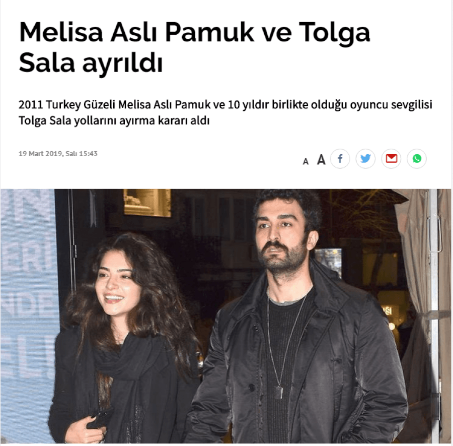 Një nga çiftet turke më të komentuara në mediat rozë i kanë dhënë fund 10-vjeçare. Sipas asaj që shkruan mediat e Stambollit, aktorët e famshëm Tolga Sala dhe Melisa Asli Pamuk janë ndarë.