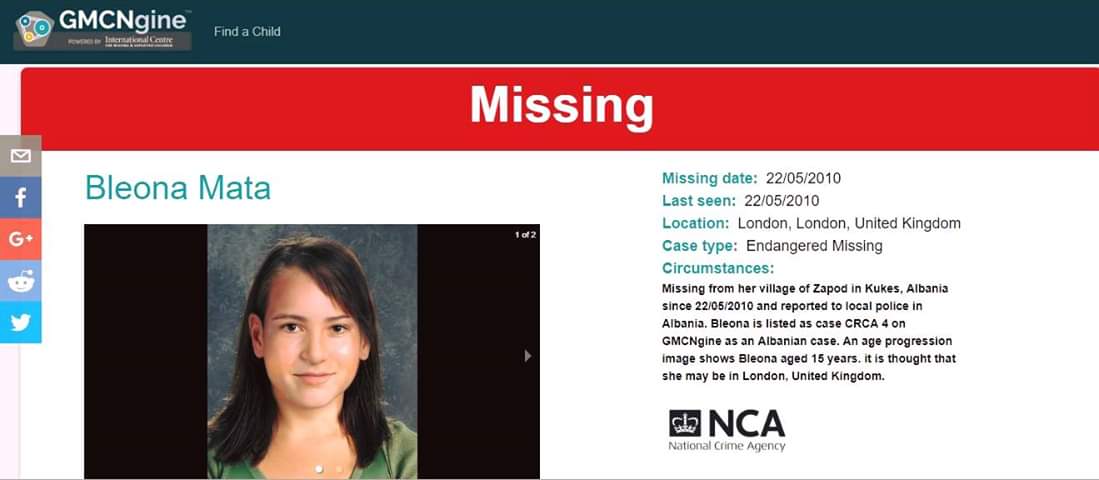 Policia britanike, Rrjeti Global i Fëmijëve të Humbur dhe Qendra Kombëtare për Fëmijët e Humbur në Shqipëri,  kanë hapur kërkimet për Bleona Matën në Mbretërine e Bashkuar.