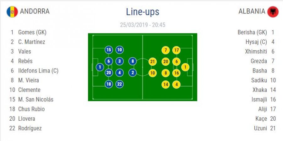 Takimi do të luhet në orën 20:45 dhe tashmë janë bërë publike formacionet zyrtare.