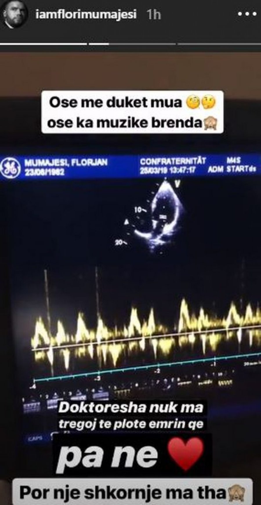 Kantautori dhe këngëtari Flor Mumajesi është një ndër më të pëlqyerit të tregut muzikor shqiptar dhe gjithnjë tërheq vëmendjen përsa i takon jetës private. Së fundmi, Flori ka treguar se ka shkuar të bëjë një vizitë mjekësore dhe ka ndarë me ndjekësit e tij në “Instagram” pamjet në monitor dhe tingullin e rrahjeve të zemrës, që sipas tij është rrëmbyer nga dikush.