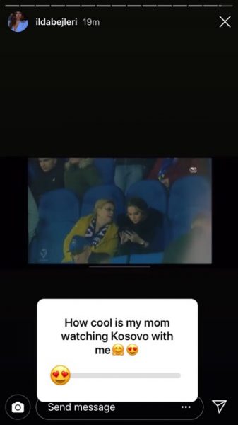Këtë herë ajo ka marrë dhe nënën e saj. Bëhet fjalë për ndeshjen e Kosovës me Bullgarinë, e cila doli dhe barazim, por ishte një ndër ndeshjet e rëndësishme për kualifikueset e Euro 2020.