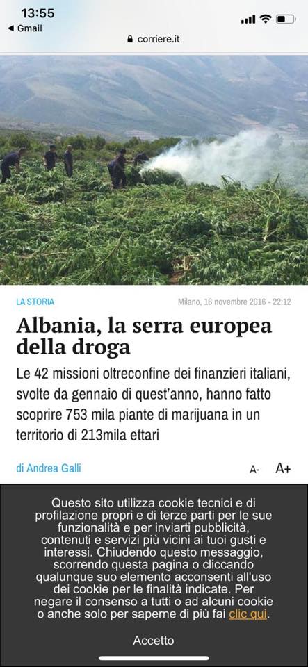 Kadilli ka publikuar disa artikuj të mediave të huaja që i referohen drogës në Shqipëri në pergjigje të reagimit te ministrit i cili dënonte njollat mbi Ministrine.