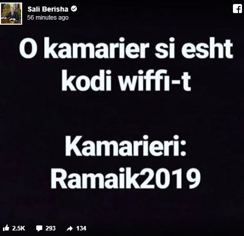 “O kamarier si esht kodi i ëiffi-t? Kamarieri: Ramaik2019.”, shkruan Berisha.