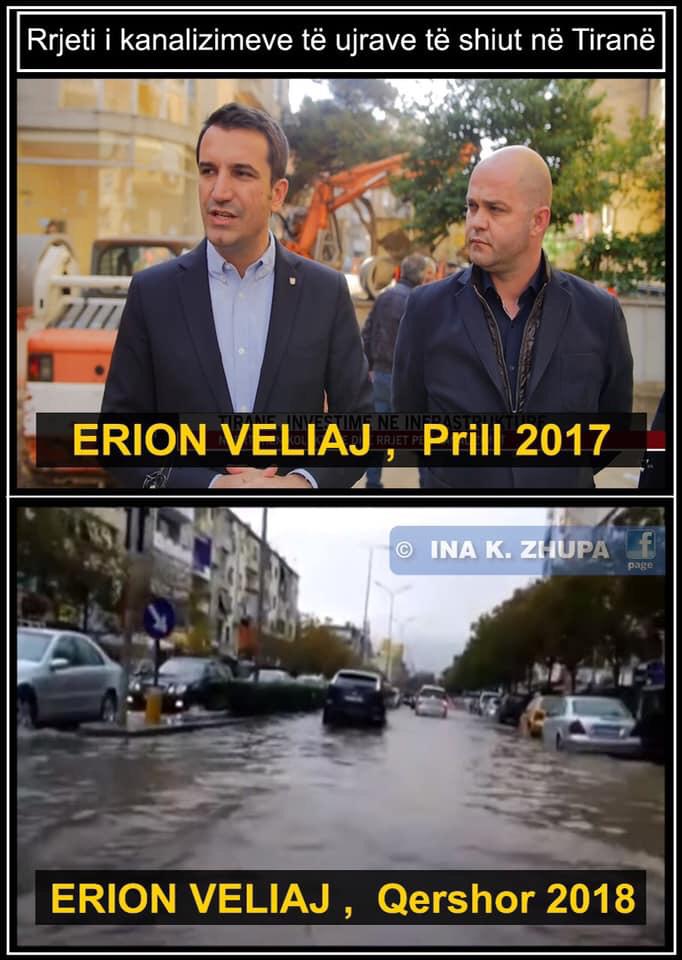 Po ashtu kemi raste pafund ku inagurimi i Veliajt nuk justifikon dot parate e harxhuara dhe shkaterrohet sa hap e mbyll syte. Kolektor te ri te paguar nga ne qe permbysin lagjet me shirat e pare, rruge te inaguruara qe shkrihen si sheqeri duke u bere rrezik per banoret, fonde te vena ne perdorim qe zhduken pa marr asgje mbrapsh qytetaret.