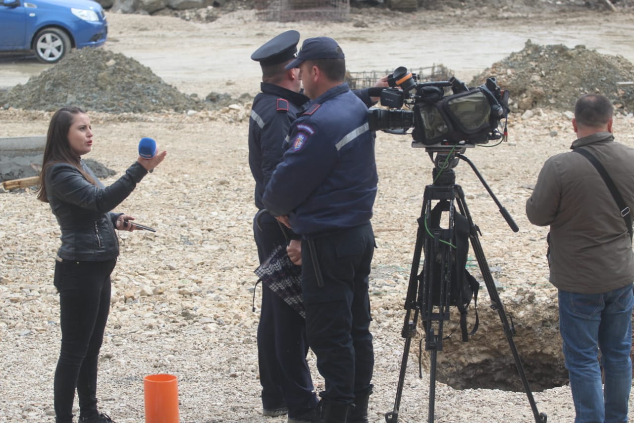 Forcat e policisë penguan gazetaren Dorjana Bezat teksa raportonte live për shembjen e banesave tek “Bregu i Lumit”.