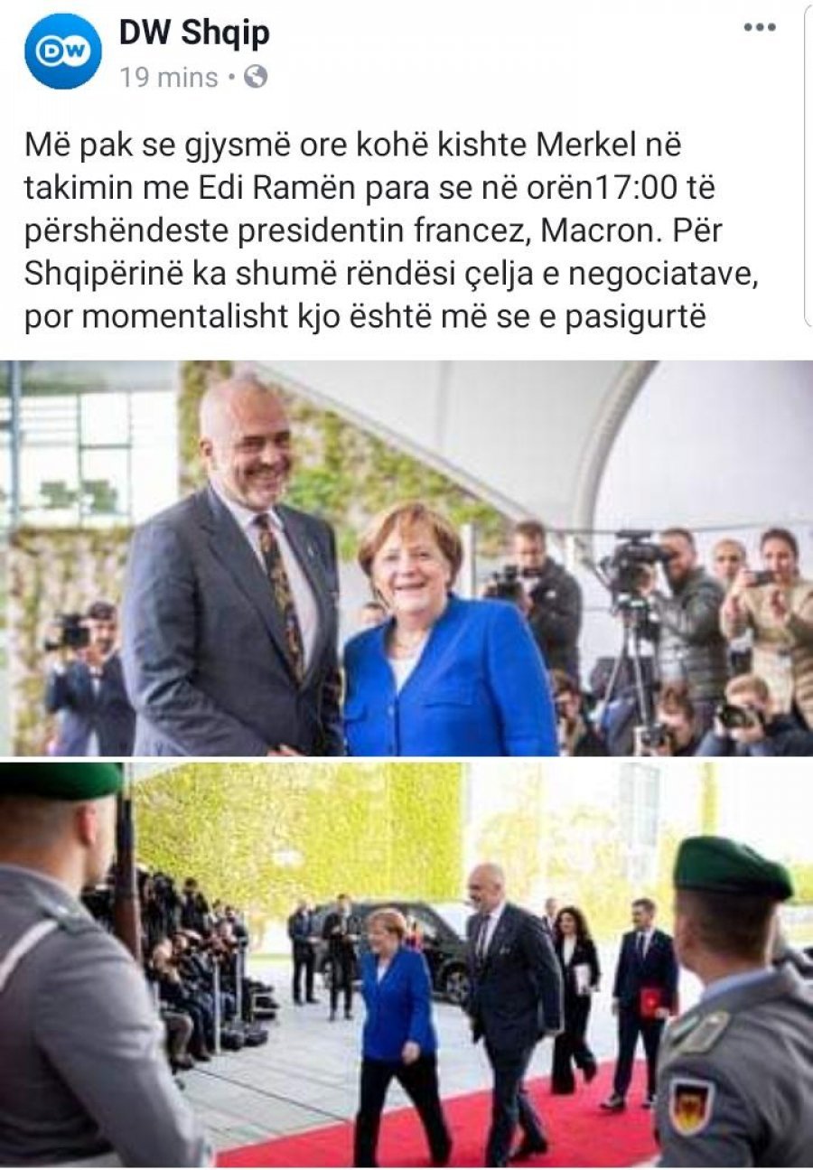 Në statusin e parë DW shkruante se kancelarja gjermane i kushtoi vetëm pak kohë Ramës dhe se cështja e negociatave është e pasigurtë.