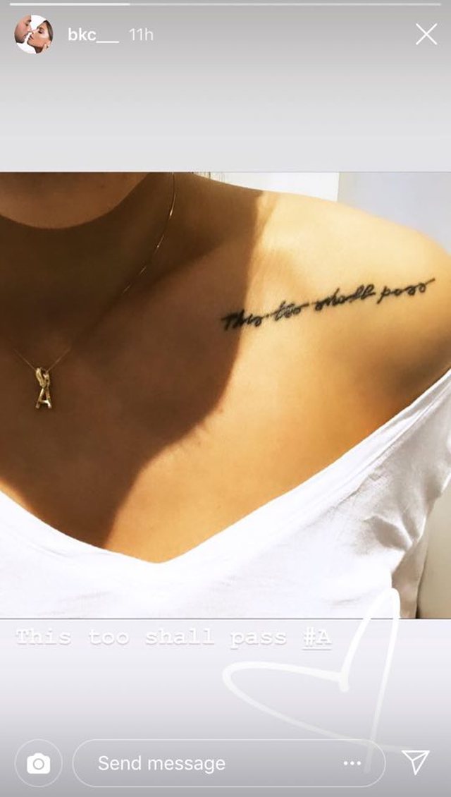Ajo ka publikuar një foto, ku shihet tatuazhi në krahë që është dedikim për bashkëshortin. “Edhe kjo do të kalojë”, shkruhet në tatuazh ndërkohë që në sy bie edhe varësja me germën ‘A’ , shkronja e parë e emrit të vërtetë të Stresit.