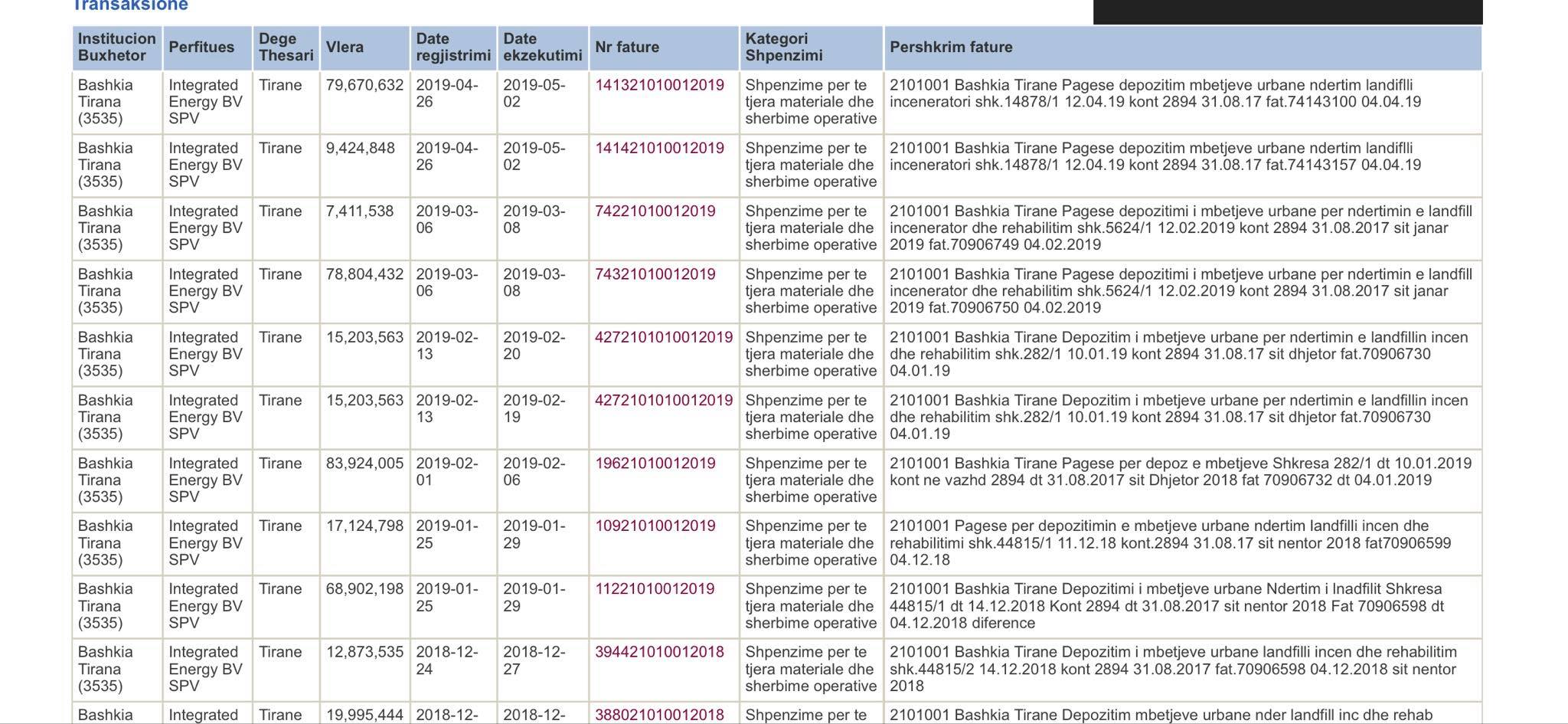 Deri më sot inceneratorët në Tiranë, Elbasan dhe Fier kanë gllabëruar nga buxheti i shtetit 53 milionë Euro në 111 pagesa, ku vetëm Tirana ka 34 pagesa me një vlerë totale prej 10.9 milion eurosh. Njerëzit me pushtet që fshihen pas inceneratorëve kanë përfituar 2700 euro në ditë, një vlerë 5.4 herë më e lartë se sa paga mesatare në vend, vetëm për inceneratorin e Tiranës. Kjo është e vetmja konratë ku me firmosjen e kontratës kanë filluar pagesat.