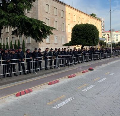 Ndërkohë që nga ana tjetër, ende pa nisur mirë protesta, policia është mobilizuar duke u rreshtuar para Kryeministrisë. Mësohet se opozitarët kanë kërkuar leje deri në mesnatë, ndërsa në përgjigje policia e Tiranës, ka dhënë leje për të protestuar deri në orën 20:30.