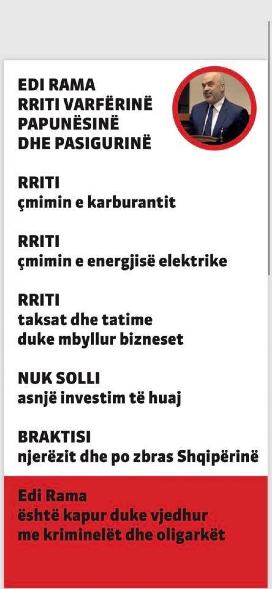 “Ja dhe disa prej arsyeve pse duhet protestuar dhe rrëzuar Edvin Rama. Sa më shumë e më shpejtë të bëhemi të gjithë bashkë, aq më shpejtë merr fund e keqja, aq më shpejt fillon ndryshimi”