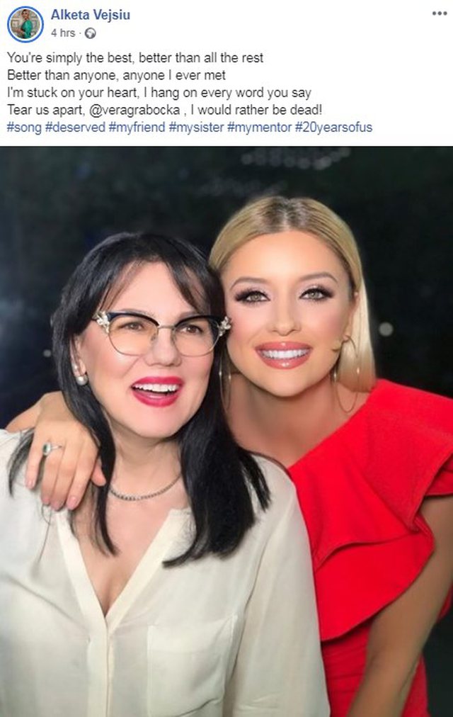 Ditën e sotme, Alketa i ka kushtuar një postim të veçantë producentes Vera Grabocka me vargjet e këngës së njohur të Tina Turner “Simply the best”.