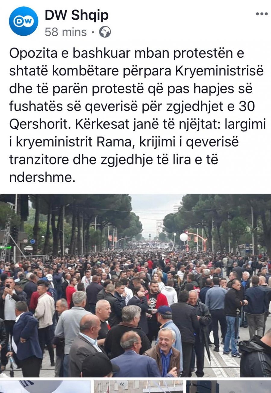 Protesta e madhe e Opozitës që po mbahet në këto momente përballë zyrës së Ramës është komentuar edhe nga Deutche Welle, e cila në një postim në rrjetet sociale të cilin e shoqëron me edhe me foto nga protesta shkruan