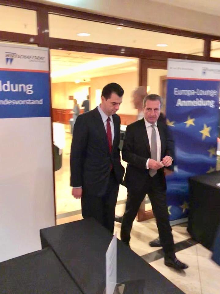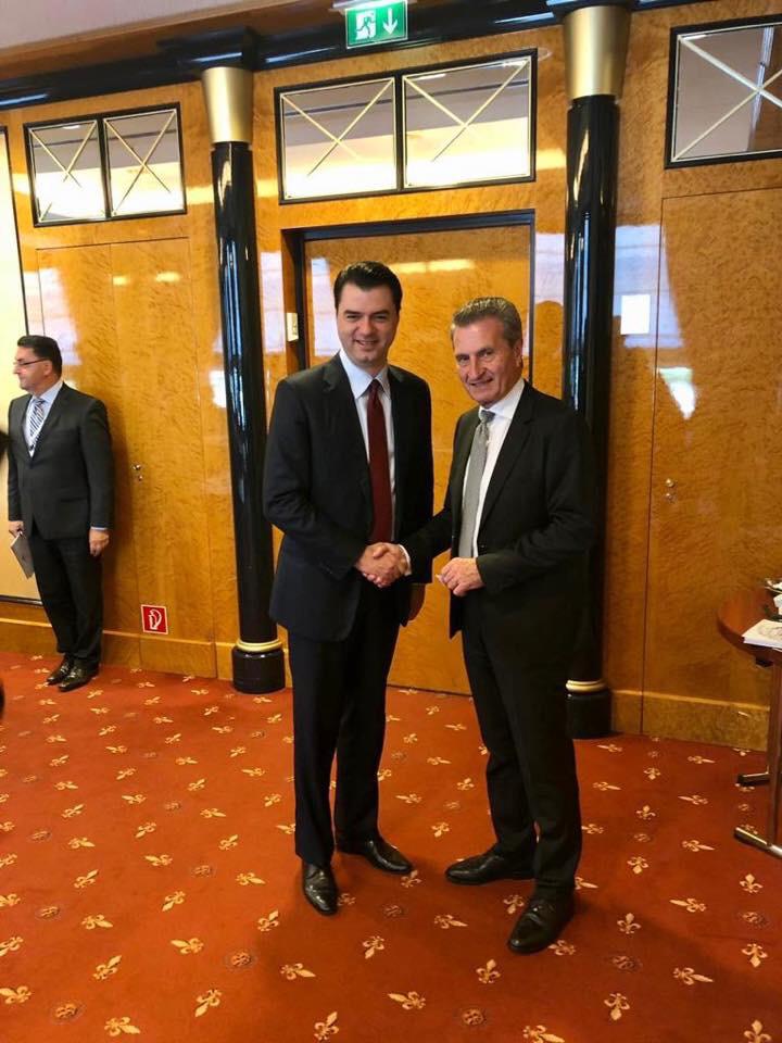 “Sot në Berlin pata një bashkëbisedim të frytshëm për Shqipërinë, zhvillimin ekonomik dhe projekte të rëndësishme që do të përmirësojnë jetën e qytetareve tanë, me Komisionerin e BE për Buxhetin dhe Burimet Njerëzore, Günther OETTINGER.