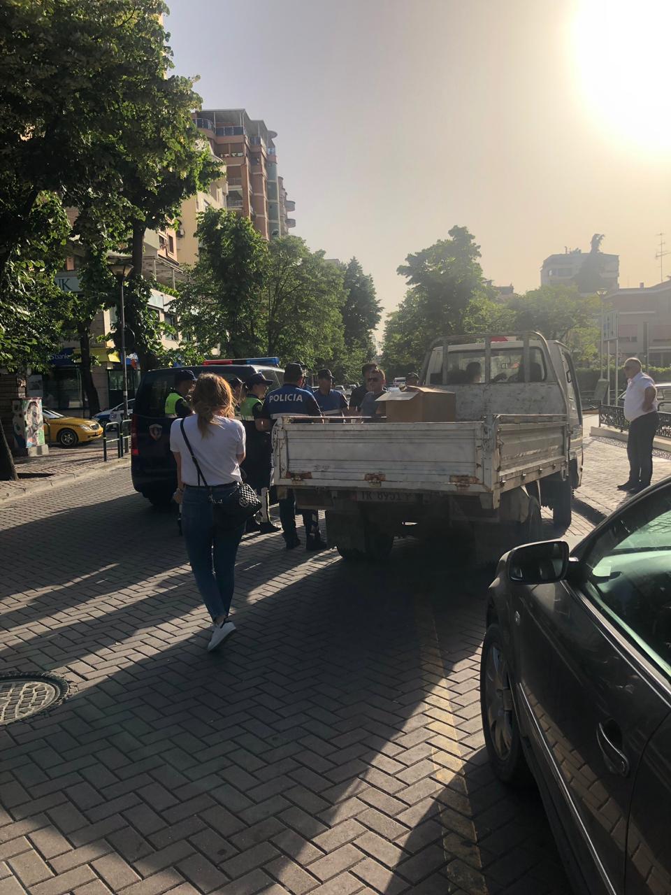 Pak minuta më parë, policia ka kryer në veprim të pandodhur kurrë më parë. Ka rrestuar flamujt, pankartat dhe vuvuzelat e pretestës. Veprimi plotësisht i paligjshëm i efektivave të Komisariatit 2 të kryeqytetit, është kundërshtuar nga organizatorët e protestës, që janë gjendur pranë kryesisë së Kuvendit, ku ka ndodhur bllokimi i automjetit me dekorin e protestes.