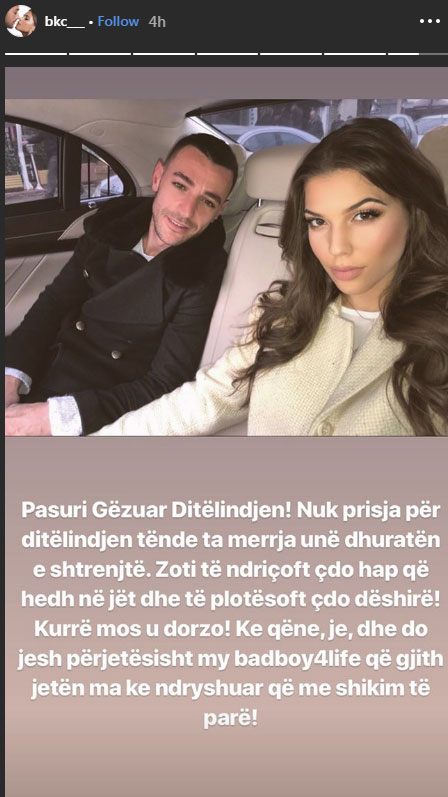 “Pasuri gëzuar ditëlindjen! Nuk prisja për ditëlindjen tënde ta merrja unë dhuratën e shtrenjtë. Zoti të ndriçoftë çdo hap që hedh në jetë dhe t’u plotësoftë çdo dëshirë. Kurrë mos u dorëzo. Ke qenë, je dhe do të jesh përjetësisht ‘my bad boy for live’ që gjithë jetën ma ke ndryshuar që me shikim të parë”- shkruan Keisi.