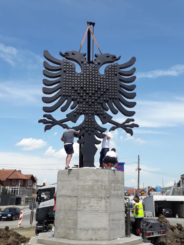 Lëvizja Vetëvendosje në zonën e Podujevës ka vendosur shqiponjën e famshme metalike tek rrethrrotullimi në hyrje të qytetit.
