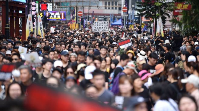 Mijëra njerëz po marshojnë para ndërtesave të qeverisë në Hong Kong për një projekt-ligj të diskutueshëm kundër ekstradimit.