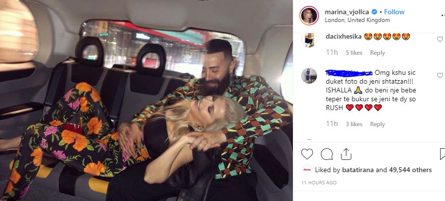 Marina ndodhet e shtrire në makinë, ndërsa dorën e ka vendosur tek barku, ndërkaq dhe dora e Getit ndodhet në barkun e saj. Kaq kq mjaftuar që të indin dyshimet. Vlen për tu theksuar se fansat e dyshes janë shumë të lumtur dhe urojnë me gjithë zemër që çifti të kurorëzojë dashurinë e tyre me një fëmijë.