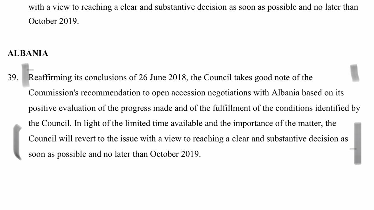 Këshilli i BE (Këshilli i Çështjeve të Përgjithshme/ General Affairs Council) vendosi që vendimmarrja për çeljen e negociatave me Shqipërinë të shtyhet deri në tetor. Kur përsëri do të shqyrtohet nga po ky Këshill që përbehet nga ministrat për Çështjet Europiane.