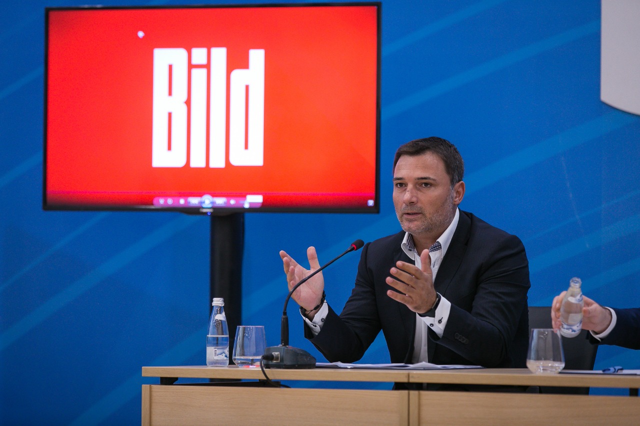 Enkelejd Alibeaj, Gazmend Bardhi dhe Clirim Gjata kanë dalë në një konferencë për shtyp nga selia blu lidhur me përgjimet e reja nga BILD.
