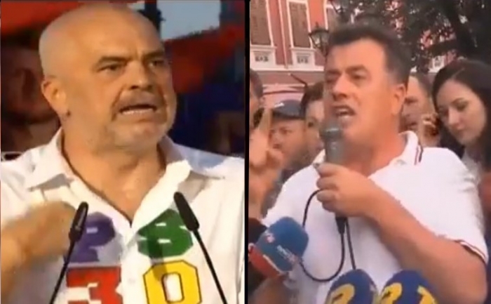 Ish-deputeti Falmur Noka foli përpara qytetarëve protestues në Shkodër, ndërkohë që përballë tyre kryeministri Rama bente fushate.