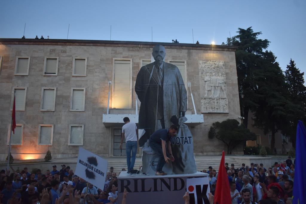 Një statujë e lartë rreth 7 metra është simboli më i dukshëm i protestës së sotme. Ai është Edi Rama në me një statujë që revokon pamjen e diktatorit komunist Enver Hoxha. Për shkak të vjedhjes së zgjedhjeve nëpërmjet krimit të organizuar, Edi Rama mbahet përgjegjës për qëllimin e tij për rivendosjen e diktaturës së krimit. Opozita ka paralajmëruar se edhe regjimi autokratik dhe kriminal që po ndërton Edi Rama do të ketë të njëjtin fat siç pati regjimi diktatorial 30 vjet më parë, rrëzimin e tij, bashkë me statujat dhe idhujt e rremë. Njësoj si statuja e Enver Hoxhës, që u tërhoq zvarrë nga qytetarët e Tiranës pas rënies së diktaturës, edhe statuja e Edi Ramës është rrëzuar, duke simboluar fundit e qeverisjes së tij.