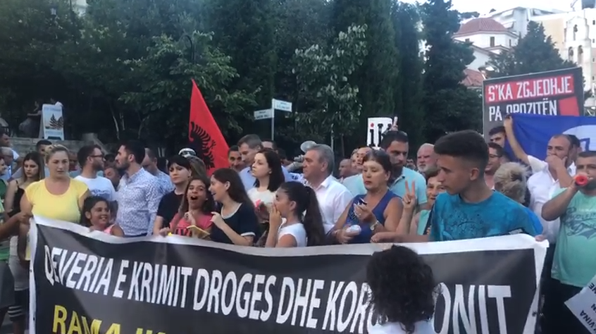 Qindra protestuesit u mblodhen tek rruga e Flamurit, rreth 200 metra larg podiumit, ku kryeministri Rama mbajti fjalën e tij.