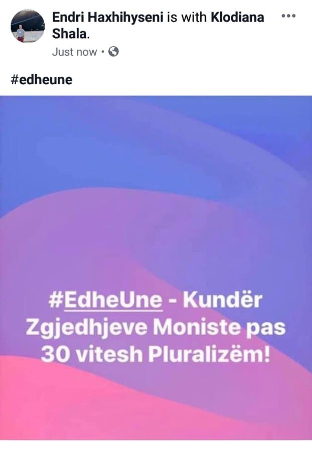 Haxhihyseni, në një status në facebook me thekson se është “kundër zgjedhjeve moniste pas 30 vitesh pluralizëm”.