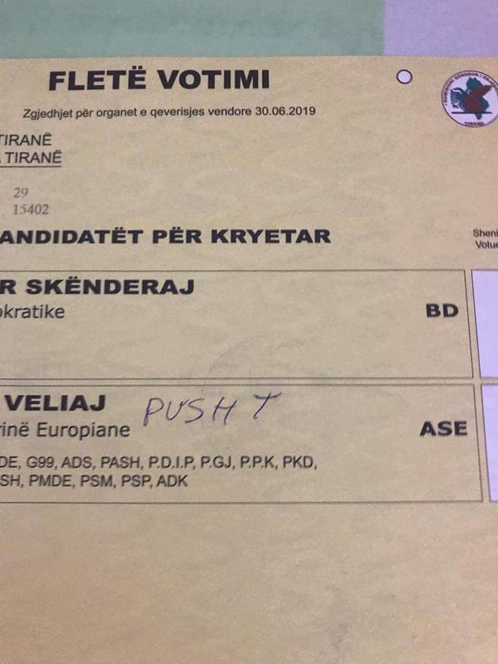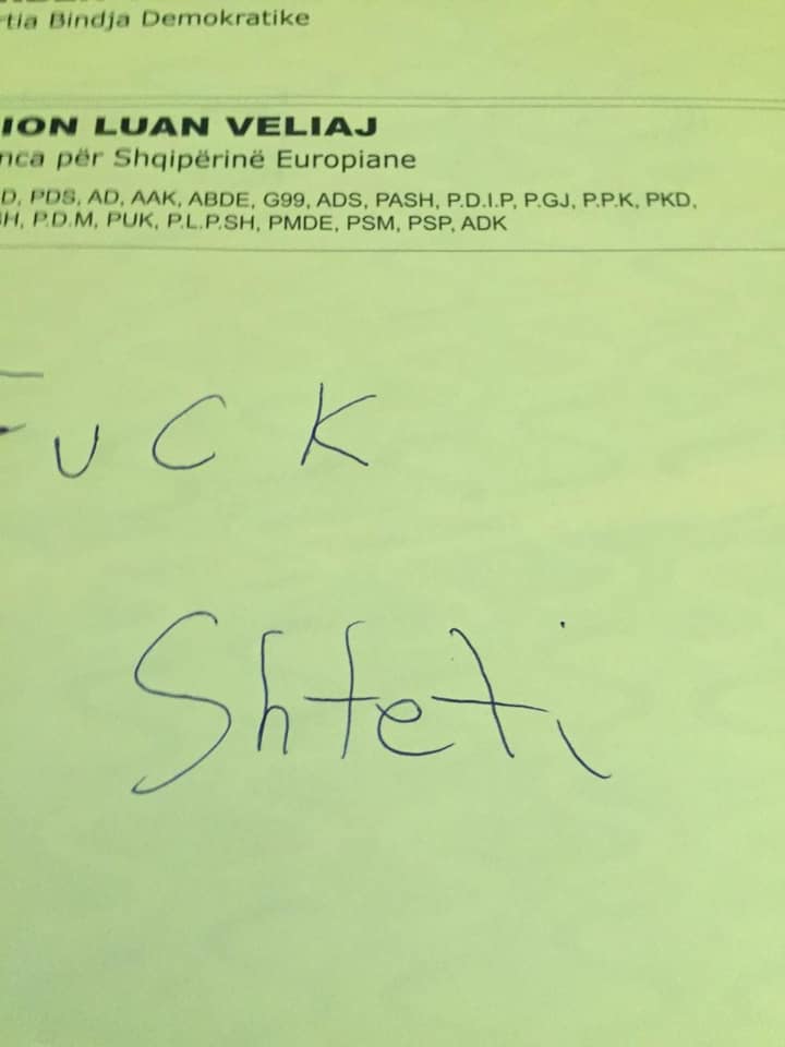 Në fletët e votimit janë shkruar mesazhe drejtuar kryebashkiakut Erjon Veliaj dhe kryeministrit Edi Rama, pamjet e të cilave na i siguron ish-deputeti Edi Paloka, te postuara në rrjetet sociale.
